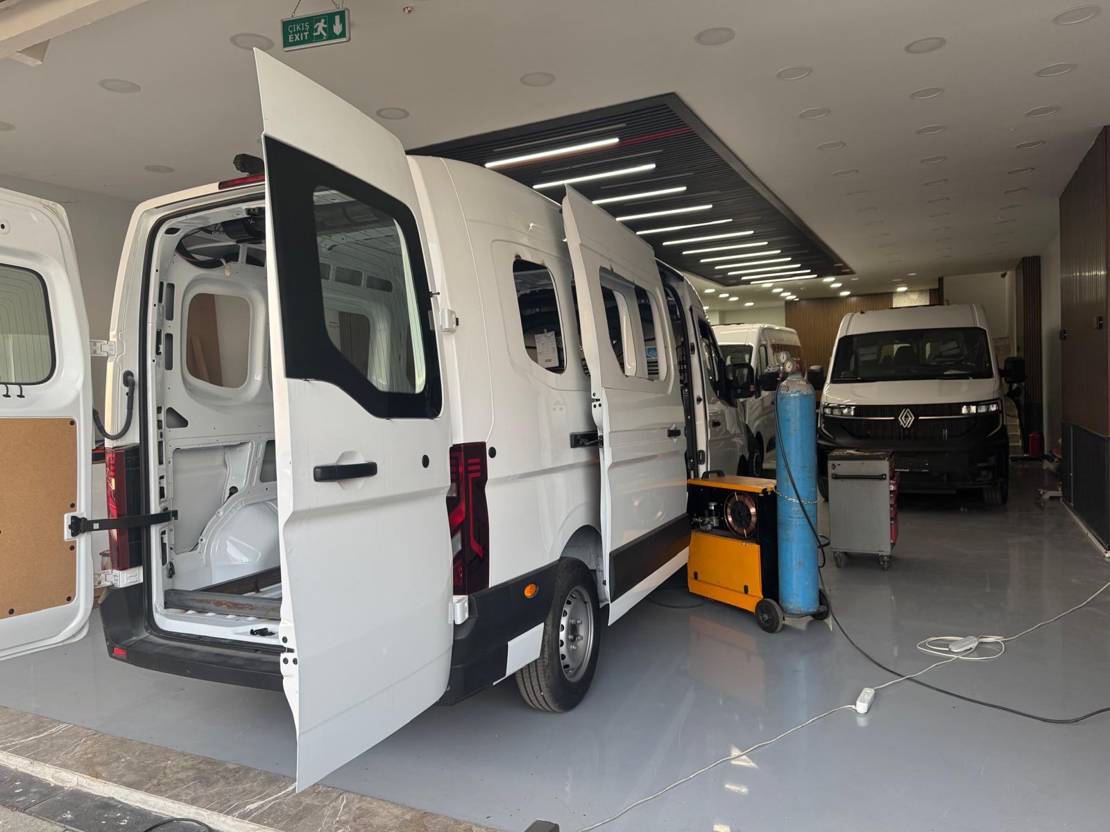 Minibüs açma, Yan panellerde kesim, pervaz ve temperli cam montajı ile ferah ve güvenli bir yolcu alanı oluşturuyoruz.Homologe cam ve sızdırmazlık kontrolü