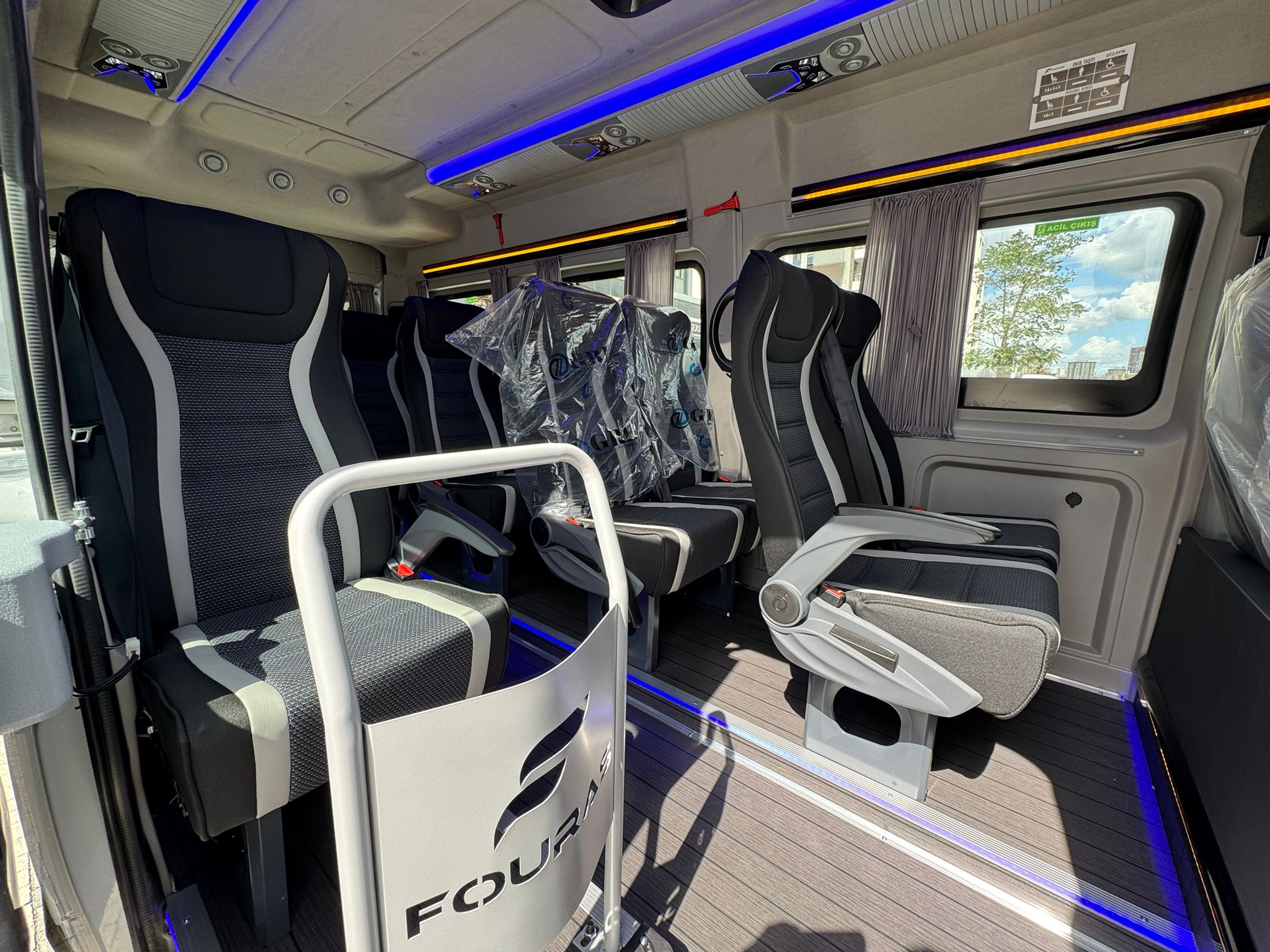 Yangın dayanımlı malzemelerle modern ve dayanıklı minibüs iç dizayn elde ediyoruz.
