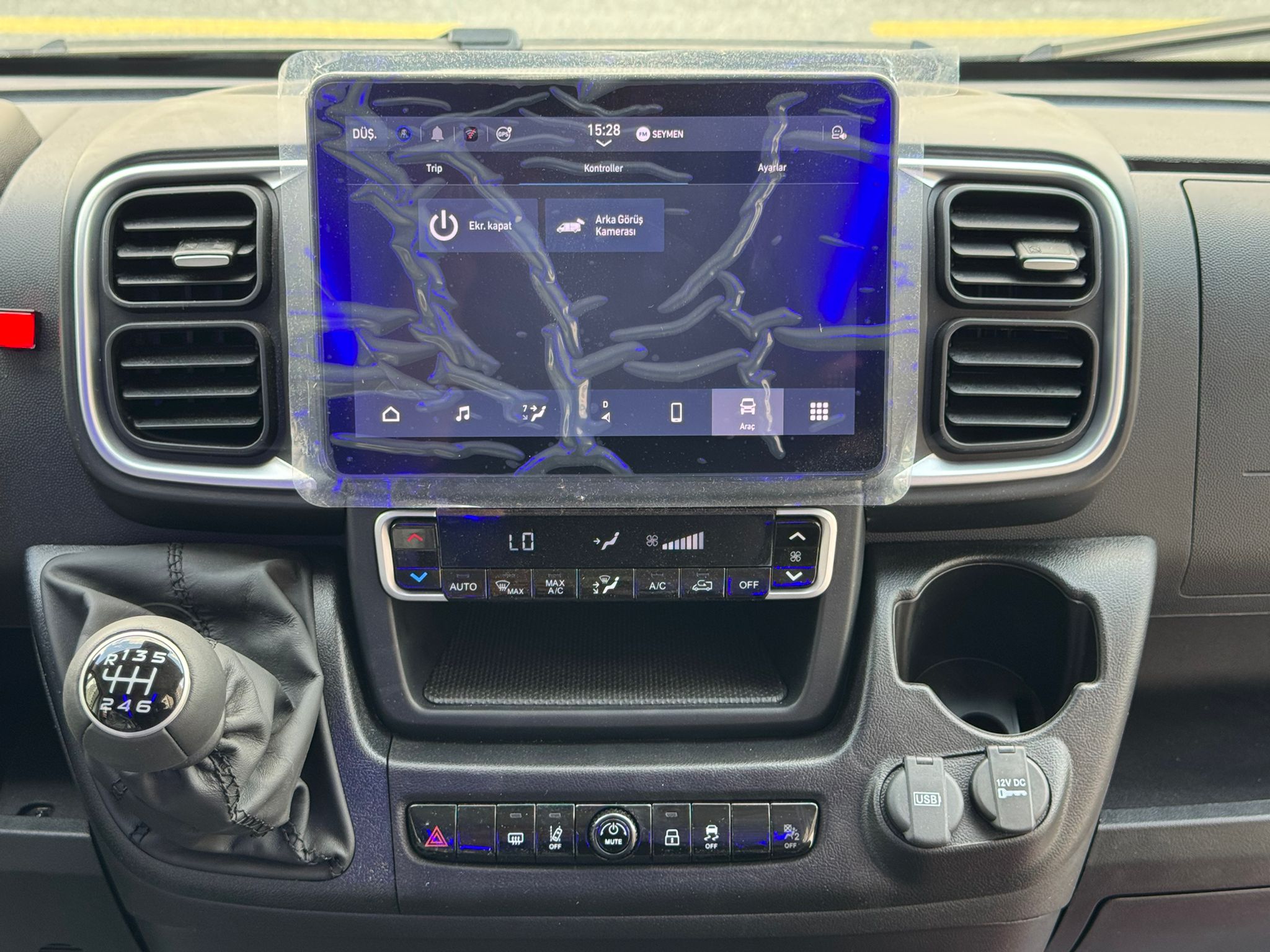 USB/12V priz dağılımı, etiketli sigorta paneli