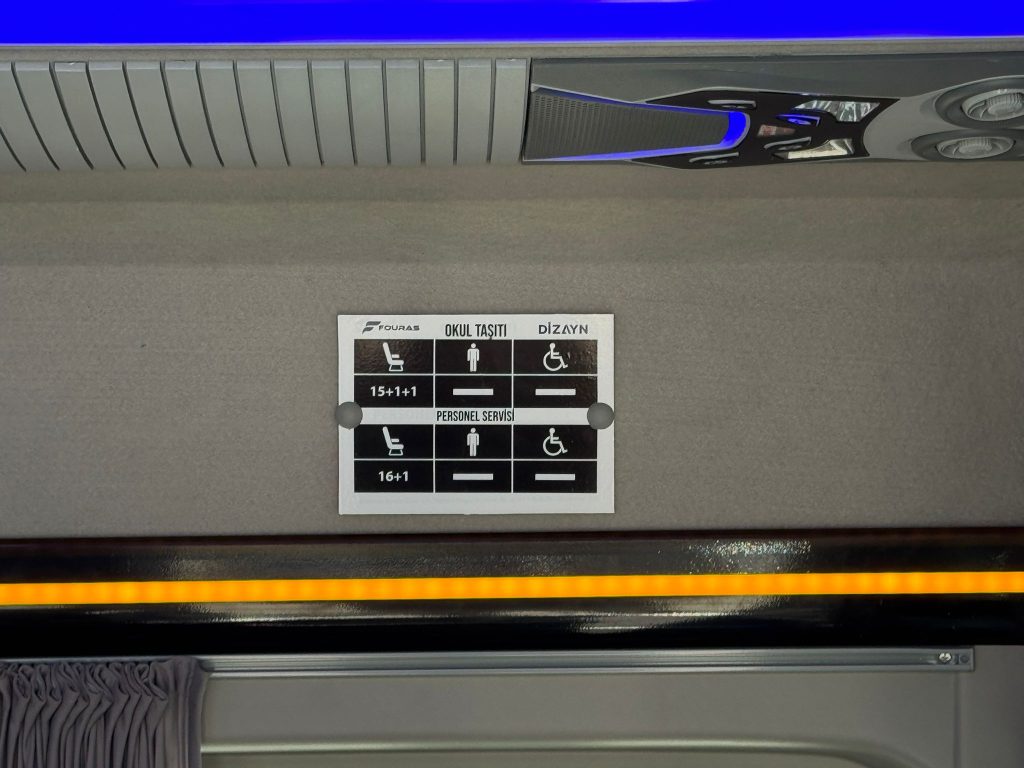 Dış görünümde “Okul Taşıtı” yazısı, reflektif şeritler ve arka “DUR” levhası; iç tarafta uyarı etiketleri ve acil durum çekiçleri standarttır. Sürgülü kapı/arka kapı mekanizmaları, çocuk güvenliği için takviye edilir; basamak yüksekliği ve tutamak konumları ergonomiye göre revize edilir. Detaylı gereklilik kontrol listemiz güvenlik & mevzuat bölümünde.